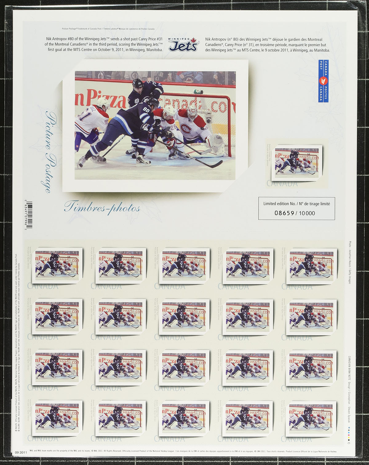 VF mint Post Office Fresh set of 2011 Diwali (set of two), 2011 EID (set of two), 2011 Hanukkah (set of two) and 2011 Winnipeg Jets (two of the three issued) Picture Postage panes of 21. The panes of PP1-PP6 are the Type 3 printings, PP8-PP9 are Type 4 printings, all dated "09 2011". These were only available in full panes directly from the Canadian Bank Note Company or Canada Post. Scarce modern material, overlooked by most collectors when issued. Undervalued in the catalogue (in our opinion). 2024 Unitrade =