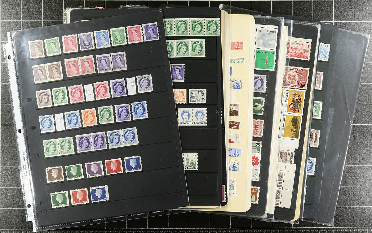 Mint Mish Mash. An intriguing and valuable holding of primarily QEII material (but noticed the odd earlier item). Arranged on 23 stockages, with emphasis on items that are "better than postage". Noted Centennials (including 2c precancel), Tagged issues, booklet panes, coils (including many strips), Cello Panes, plate blocks etc. A spot check showed primarily Never Hinged material, with everything here being overall very clean. Owner estimate the Unitrade catalogue is +/- $2000.00, which we think is fairly reasonable. Estimate =