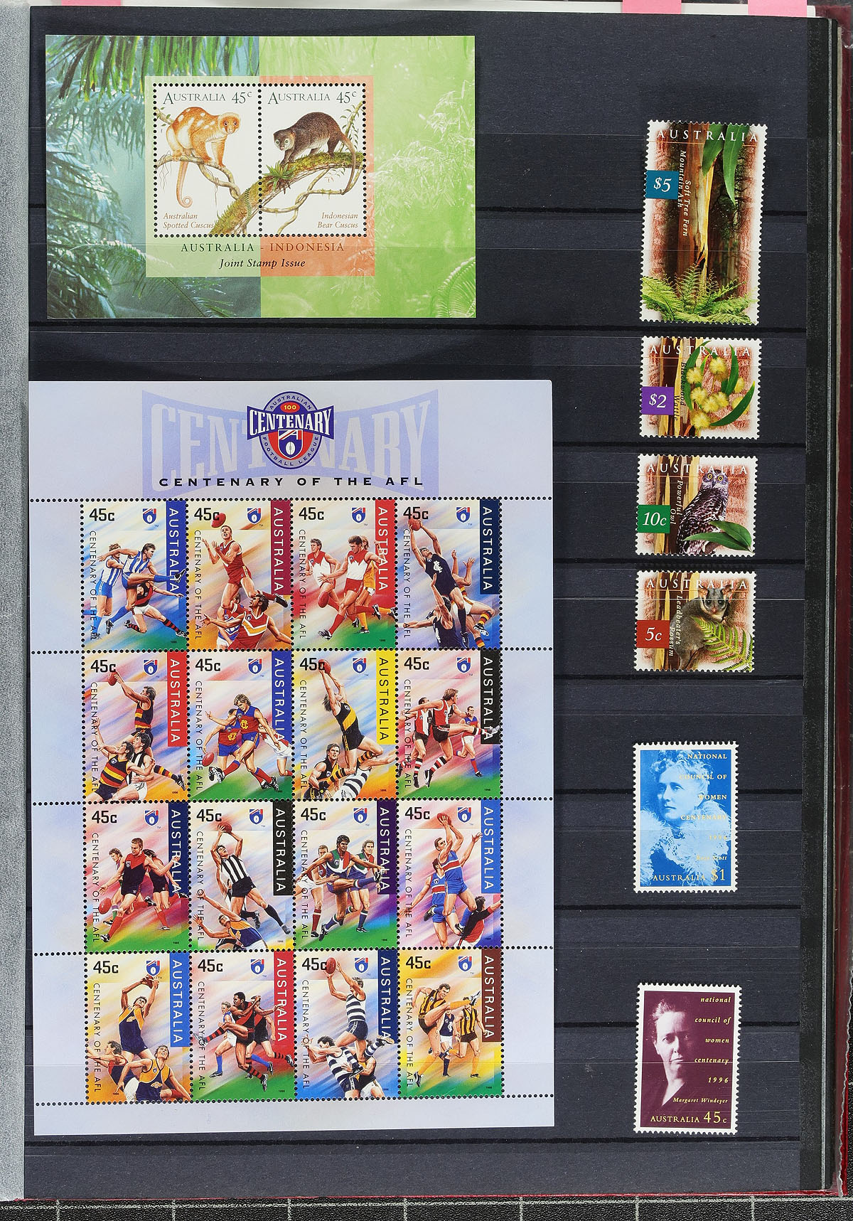 Nice collection of never hinged Australia, 1978-2001, containing well over 1,300 stamps, neatly organized in a stockbook. This very clean collection ranges from Scott #671/1930a, including several souvenir sheets and sheetlets, noting a high degree of completeness in period. A potentially high cataloguing collection with face value alone totaling over $800.00. Lovely and clean for all collectors, with online photos showing just a few pages. Estimate =