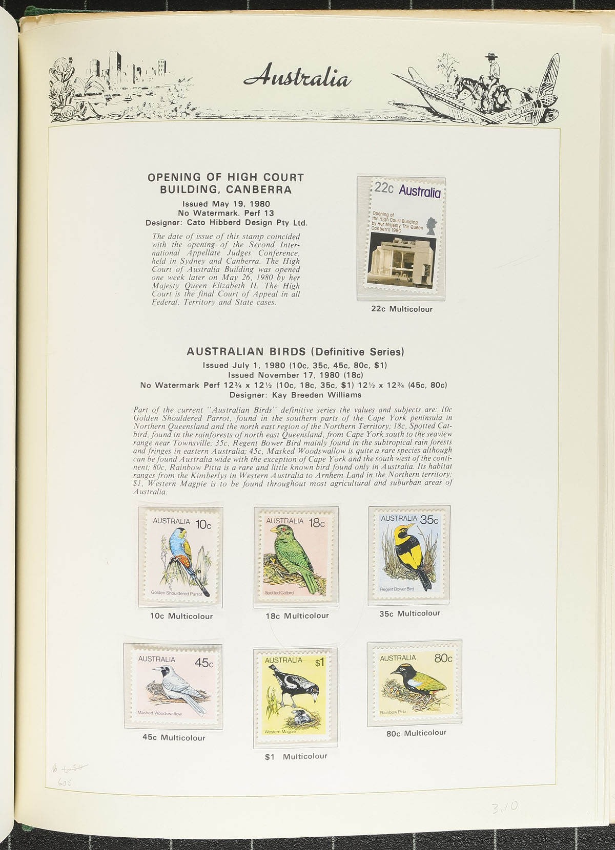 Clean collection of never hinged Australia, 1966-1980, containing many hundreds of stamps, neatly organized in hingeless mounts in a springback album. The collection ranges from Scott #394/762, noting a high degree of completeness in period, including a few singles and sets cataloguing $10 and up. Owner’s 2016 Scott catalogue value for the collection totals US$559.00 ($754.65 CDN). A nice collection that should be expanded. Estimate =