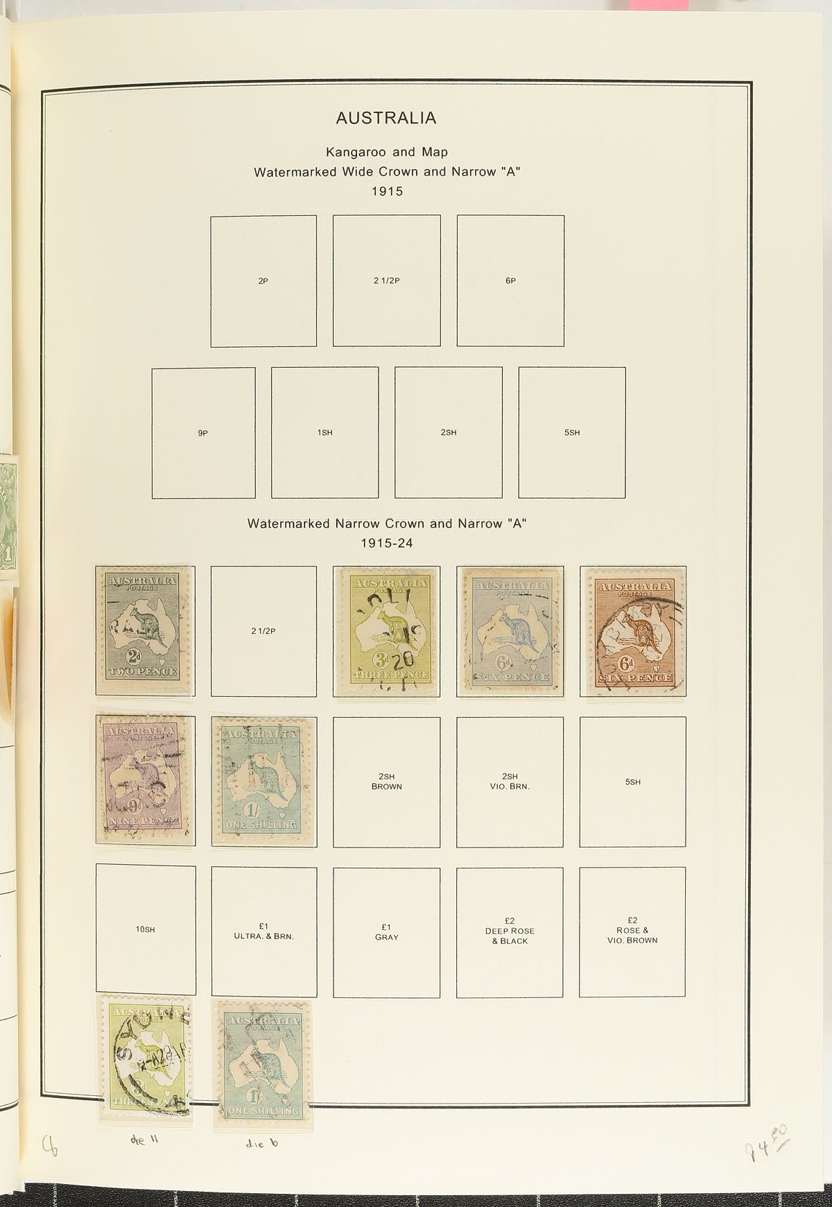Collection / accumulation of used Australia, 1913-1990's, containing several hundreds of stamps in over 20 stock or album pages. We note selections of Kangaroos, KGV Heads, sets and partial sets, noting some material cataloguing $10 and up. Some mild duplication throughout, still al nice lot for the Australia or Commonwealth collector. Owner's older 2019 Scott US$1,837.00 =