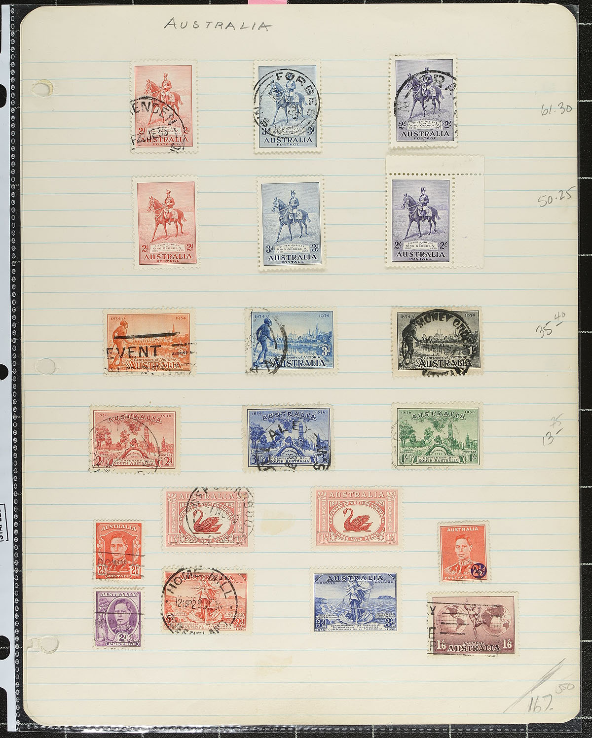 Collection / accumulation of used Australia, 1913-1990's, containing several hundreds of stamps in over 20 stock or album pages. We note selections of Kangaroos, KGV Heads, sets and partial sets, noting some material cataloguing $10 and up. Some mild duplication throughout, still al nice lot for the Australia or Commonwealth collector. Owner's older 2019 Scott US$1,837.00 =