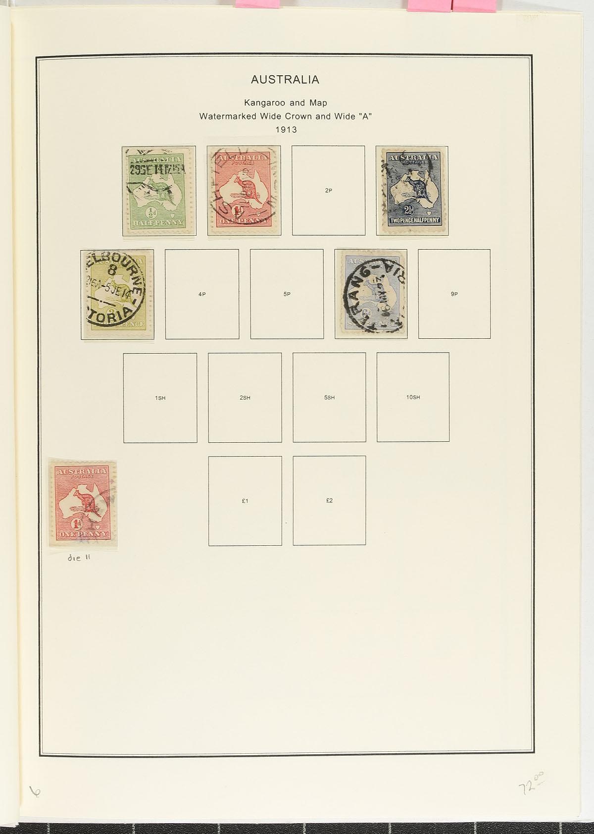 Collection / accumulation of used Australia, 1913-1990's, containing several hundreds of stamps in over 20 stock or album pages. We note selections of Kangaroos, KGV Heads, sets and partial sets, noting some material cataloguing $10 and up. Some mild duplication throughout, still al nice lot for the Australia or Commonwealth collector. Owner's older 2019 Scott US$1,837.00 =