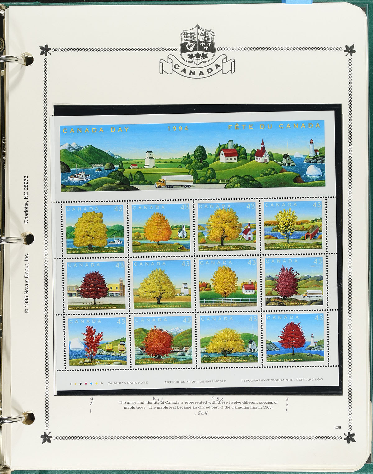 Minkus Mint Collection Part B. The run of 1986-1999, housed within a deluxe padded / illustrated green 3-ring album, with matching Minkus pages for 1986-1999 and black mounts added for the stamps. This album is a largely complete for the period, with the many large commemorative issues from this period. We also noted a run of Canadian Wildlife Conservation booklets, which were note counted in the total face value. Conservatively valued for the total mint postage / face value alone. Total face value =