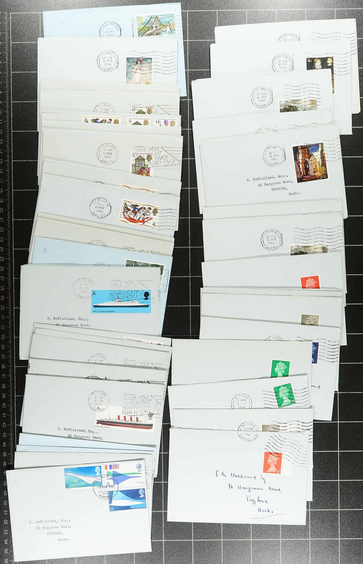 First Day Covers. A lovely group of roughly 400 Great Britain first day covers, 1967-2000's, loose in a box, noting primarily sets, singles, souvenir sheet frankings, including different postmarks, special event covers, and more. A lovely lot with several colourful cachets, ideal for cover, thematic and topical collectors, overall very fine. Estimate =