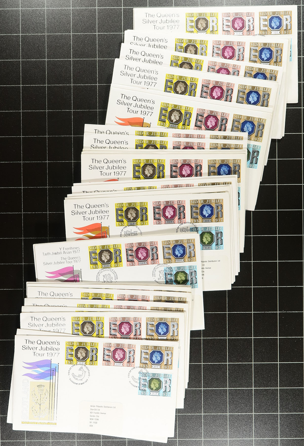 First Day Covers. A lovely group of roughly 400 Great Britain first day covers, 1967-2000's, loose in a box, noting primarily sets, singles, souvenir sheet frankings, including different postmarks, special event covers, and more. A lovely lot with several colourful cachets, ideal for cover, thematic and topical collectors, overall very fine. Estimate =