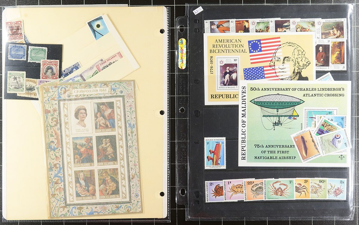Pacific Islands Grouping. Colourful group of primarily never hinged material from the Pacific Islands, containing singles, sets, many souvenir sheets and a few sheetlets, generally from the 1970's onwards, with representation from Niue, Marshall Islands, Palau, Cook Islands, and a few others. Owner's older catalogue value for the group totals US$637.00 ($859.95 CDN). A nice lot for thematic, topical, and worldwide collectors, overall fine to very fine. Estimate =