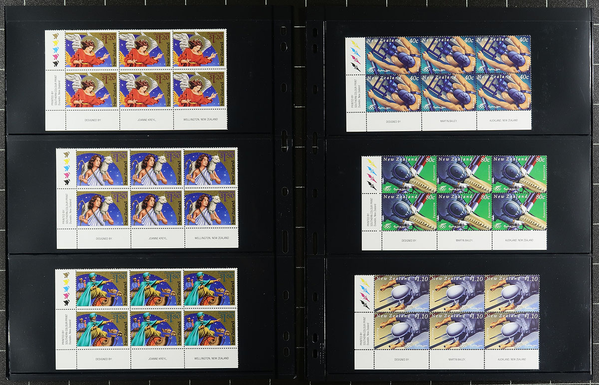 Collection of mint and used New Zealand souvenir sheets and blocks, 1960's-2003, containing a few hundred items in over 15 stock pages. The lot contains roughly 60, primarily mint never hinged souvenir sheets, including mint and used Health sheets, along with more modern plate blocks from the 1990's, noting items cataloguing in the $10 to $15 range. Owners 2012 Scott catalogue value for the lot totals US$672.00 ($907.20 CDN). A nice lot with several topical and thematic possibilities, overall fine to very fine. Estimate =