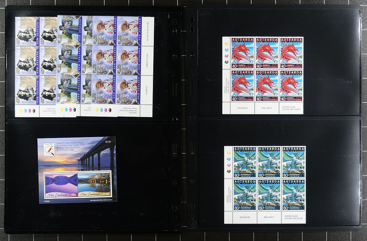 Collection of mint and used New Zealand souvenir sheets and blocks, 1960's-2003, containing a few hundred items in over 15 stock pages. The lot contains roughly 60, primarily mint never hinged souvenir sheets, including mint and used Health sheets, along with more modern plate blocks from the 1990's, noting items cataloguing in the $10 to $15 range. Owners 2012 Scott catalogue value for the lot totals US$672.00 ($907.20 CDN). A nice lot with several topical and thematic possibilities, overall fine to very fine. Estimate =