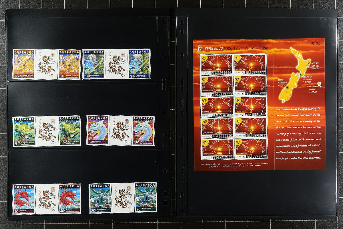 Collection of mint and used New Zealand souvenir sheets and blocks, 1960's-2003, containing a few hundred items in over 15 stock pages. The lot contains roughly 60, primarily mint never hinged souvenir sheets, including mint and used Health sheets, along with more modern plate blocks from the 1990's, noting items cataloguing in the $10 to $15 range. Owners 2012 Scott catalogue value for the lot totals US$672.00 ($907.20 CDN). A nice lot with several topical and thematic possibilities, overall fine to very fine. Estimate =