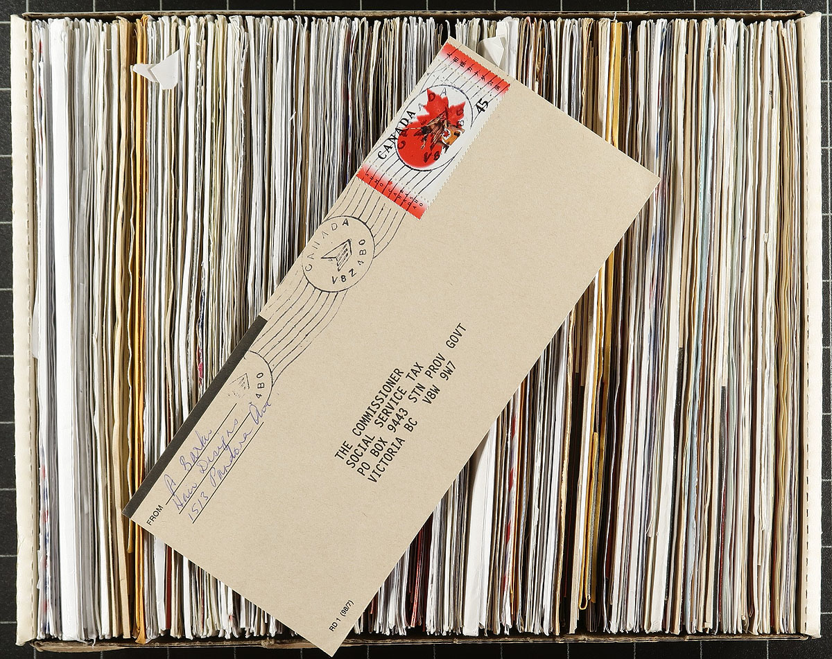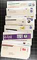 British Columbia Postal History. Accumulation of roughly 400 covers collected for BC postmarks, 1990's-2010, all #10 sized commercial envelopes (many having corner advertising), with almost all having single commemorative frankings. A spot check indicated towns ranging from B to W, noting POCONS, spray on, cds, Klussendorf, and surely other postmark types. A nice lot, especially postmark hunters, along with used collectors looking for more modern used material. Estimate =