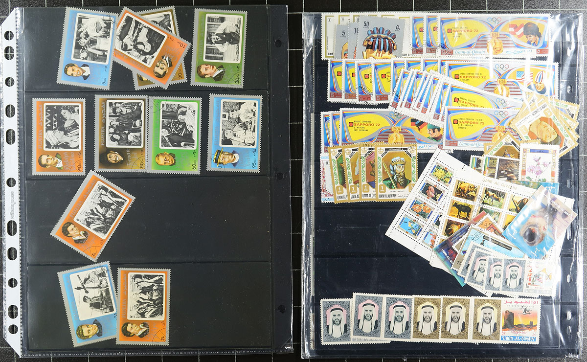 Middle East. An interesting group of mint and used Middle East stamps, 1900's-1970's, containing many hundreds of stamps in roughly 15 stock or album pages. A cursory check indicated better representation from Yemen, Iraq, Saudi Arabia, Sand Dunes, and a few others, noting singles, primarily sets, and a selection of souvenir sheets, with a few cataloguing $5 to $10 and up. Owner's 2015 Scott catalogue value for the group totals US$752.00, leaving better finds to the specialist. A popular collecting area, ideal for all worldwide collectors, overall fine to very fine. Estimate =