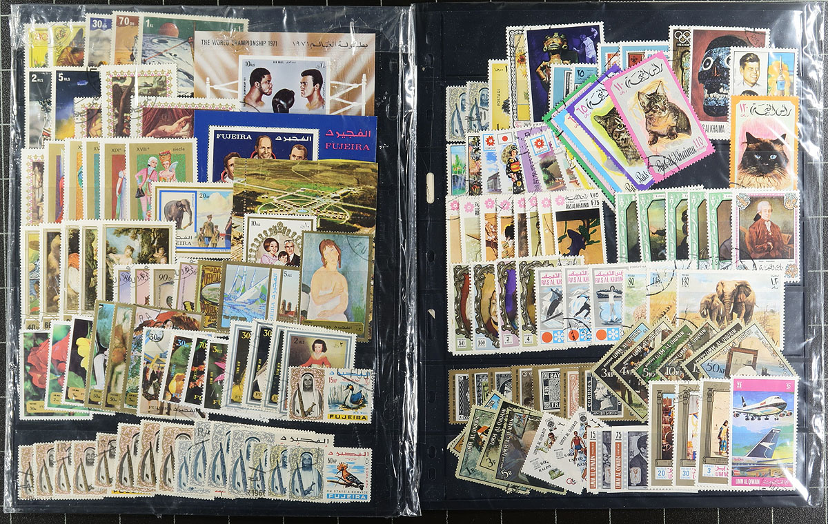 Middle East. An interesting group of mint and used Middle East stamps, 1900's-1970's, containing many hundreds of stamps in roughly 15 stock or album pages. A cursory check indicated better representation from Yemen, Iraq, Saudi Arabia, Sand Dunes, and a few others, noting singles, primarily sets, and a selection of souvenir sheets, with a few cataloguing $5 to $10 and up. Owner's 2015 Scott catalogue value for the group totals US$752.00, leaving better finds to the specialist. A popular collecting area, ideal for all worldwide collectors, overall fine to very fine. Estimate =
