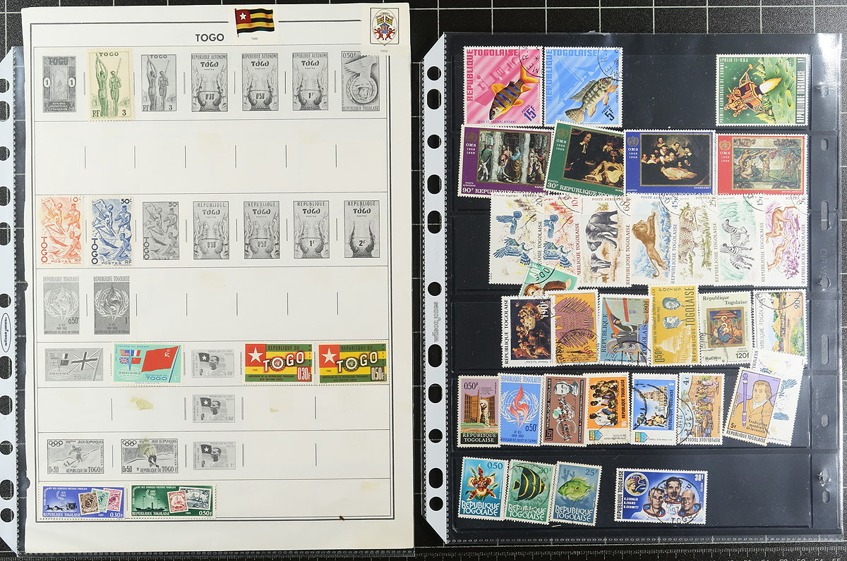 French Africa. Group of mint and used primarily French Colonies in Africa, 1950's-1970's, containing many hundreds of stamps in roughly 12 stock or album pages, and a few dealer cards. A quick check indicated better representation from Togo, Rwanda, Tunisia, and a few more, noting singles, several sets, and souvenir sheets, with some material cataloguing $5 to $10 each, leaving better finds for the dedicated collector. Our online photos show an overview and should be worth a look. Overall fine to very fine. Estimate =