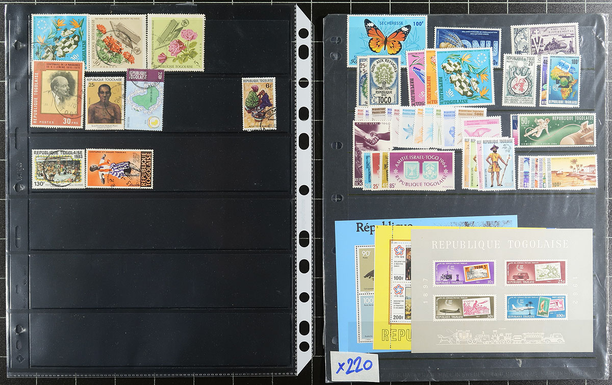 French Africa. Group of mint and used primarily French Colonies in Africa, 1950's-1970's, containing many hundreds of stamps in roughly 12 stock or album pages, and a few dealer cards. A quick check indicated better representation from Togo, Rwanda, Tunisia, and a few more, noting singles, several sets, and souvenir sheets, with some material cataloguing $5 to $10 each, leaving better finds for the dedicated collector. Our online photos show an overview and should be worth a look. Overall fine to very fine. Estimate =