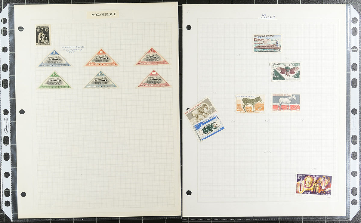 French Africa. Group of mint and used primarily French Colonies in Africa, 1950's-1970's, containing many hundreds of stamps in roughly 12 stock or album pages, and a few dealer cards. A quick check indicated better representation from Togo, Rwanda, Tunisia, and a few more, noting singles, several sets, and souvenir sheets, with some material cataloguing $5 to $10 each, leaving better finds for the dedicated collector. Our online photos show an overview and should be worth a look. Overall fine to very fine. Estimate =
