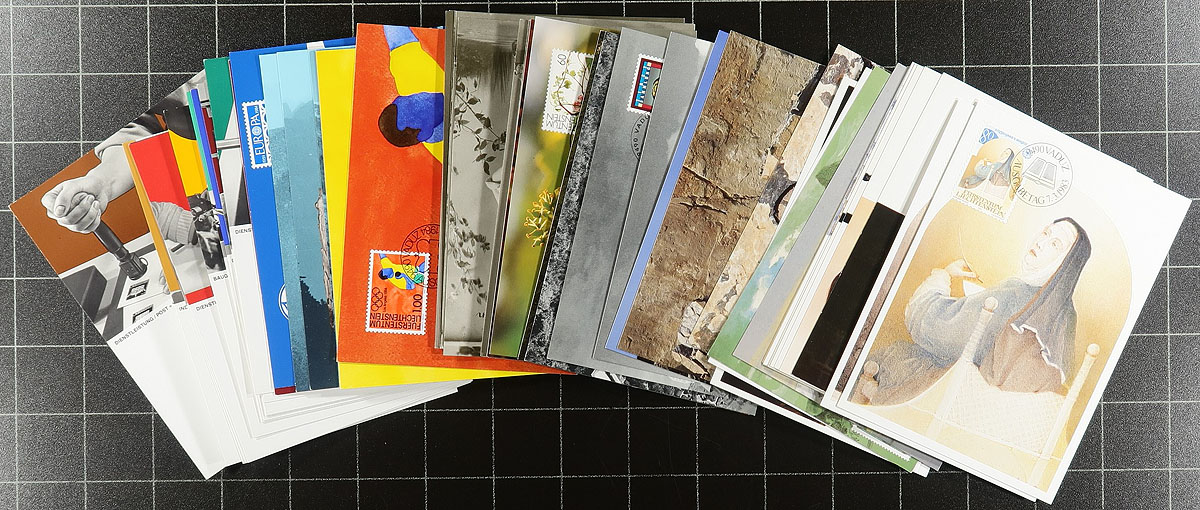 Lovely collection of roughly 210 Liechtenstein maximum cards, 1978-1991, almost all still in original post office envelopes, generally ranging from Scott #650/975. The collection appears to be complete in period, with mild duplication throughout. Original cost was over 1,400 Francs, and suitable for collectors and dealers alike. Estimate =