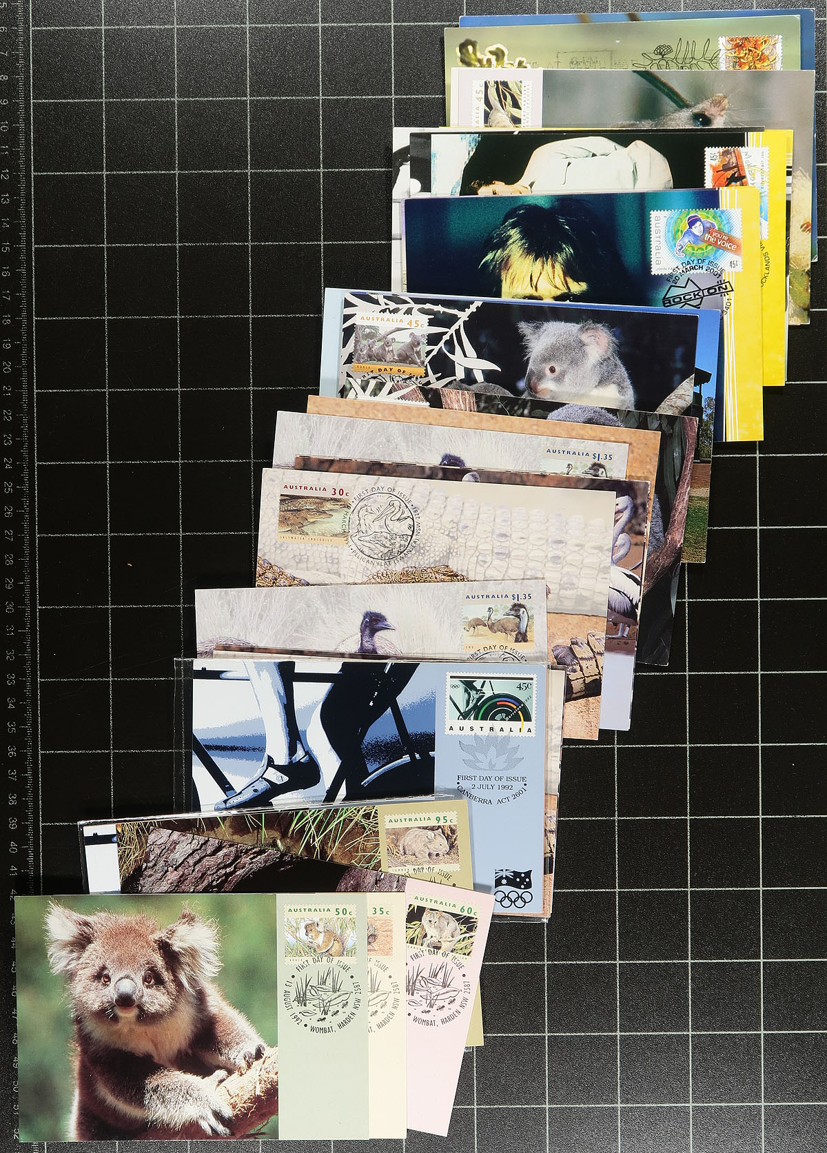 Very nice collection of roughly 300 Australia maximum cards, loose in box, generally ranging from the 1990's to the early 2000's, each having first day pictorial postmarks relating to the issue. A nice lot for the topical and thematic collector, overall very fine. Estimate =