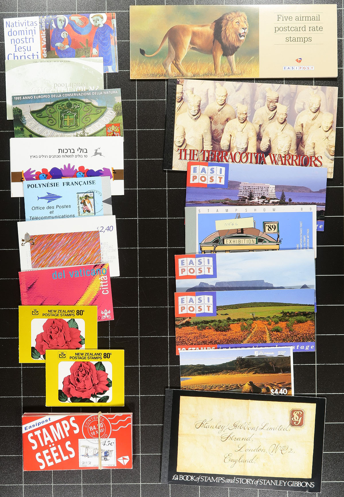 Accumulation of never hinged worldwide booklets, 1970's-2000s, containing a few hundred booklets, with better representation from Great Britain, Channel Islands, Australia, New Zealand, Italy, United Nations, and a few others. A spot check indicated a few items cataloguing $10 to $15 and up. Some mild duplication with a few of the prestige booklets, with duplication ranging from 5 to 10 for a few other issues. A nice lot for collectors and dealers alike. Estimate =