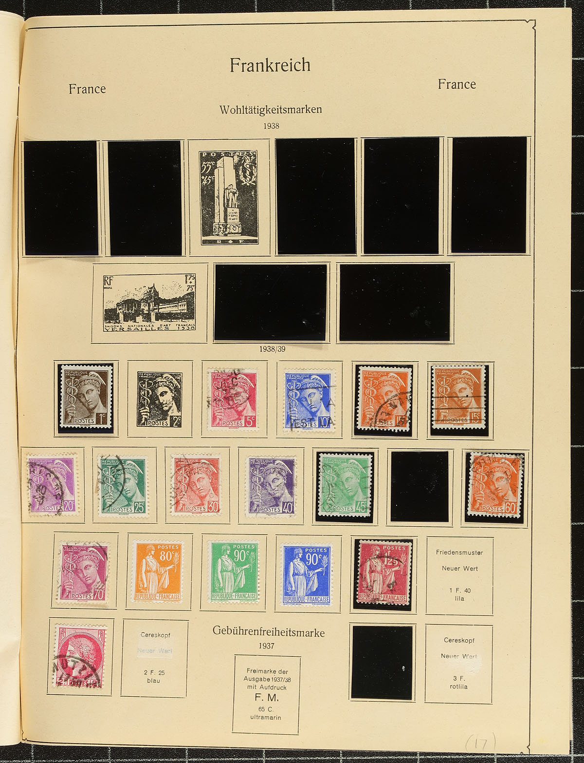 Collection of used France, 1853-1942, containing over 600 stamps on roughly 25 homemade and album pages. A nice starter collection, fairly well organized generally ranging from Scott #19/453, with a spot check indicating a few stamps and sets cataloguing $10 and up. Postmark interest includes a few Paris star cancels, numerals, cds, and a few other types, including a few dated "socked on the nose" town cancels. A nice start to this popular collecting area, a few small faults with a few of the early stamps, overall fine to very fine. Estimate =