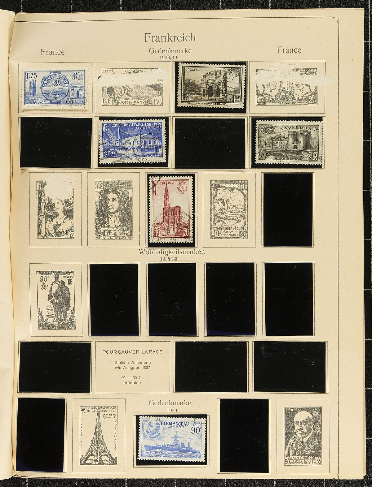 Collection of used France, 1853-1942, containing over 600 stamps on roughly 25 homemade and album pages. A nice starter collection, fairly well organized generally ranging from Scott #19/453, with a spot check indicating a few stamps and sets cataloguing $10 and up. Postmark interest includes a few Paris star cancels, numerals, cds, and a few other types, including a few dated "socked on the nose" town cancels. A nice start to this popular collecting area, a few small faults with a few of the early stamps, overall fine to very fine. Estimate =