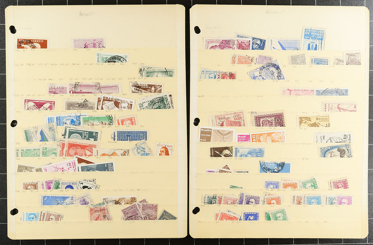 Large accumulation of primarily used South and Central America, 1880's-1960's, with a few thousand stamps in over 30 stock pages. A quick cursory check indicated better representation from Costa Rica, Nicaragua, Brazil, Colombia, along with a few other countries. Some of the material has been identified, with catalogue values for stamps generally $3 and under, leaving better finds, including better postmarks to the dedicated collector. A nice opportunity for worldwide collectors from this sometimes under-appreciated collecting area. Overall fine to very fine. Estimate =