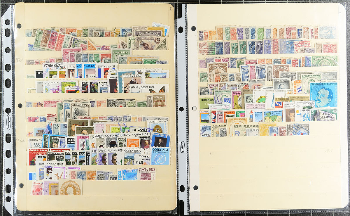 Large accumulation of primarily used South and Central America, 1880's-1960's, with a few thousand stamps in over 30 stock pages. A quick cursory check indicated better representation from Costa Rica, Nicaragua, Brazil, Colombia, along with a few other countries. Some of the material has been identified, with catalogue values for stamps generally $3 and under, leaving better finds, including better postmarks to the dedicated collector. A nice opportunity for worldwide collectors from this sometimes under-appreciated collecting area. Overall fine to very fine. Estimate =