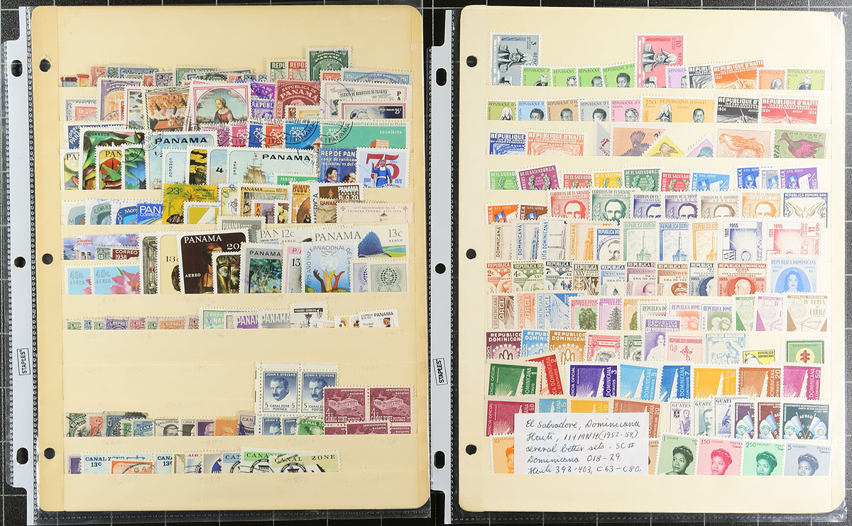 Large accumulation of primarily used South and Central America, 1880's-1960's, with a few thousand stamps in over 30 stock pages. A quick cursory check indicated better representation from Costa Rica, Nicaragua, Brazil, Colombia, along with a few other countries. Some of the material has been identified, with catalogue values for stamps generally $3 and under, leaving better finds, including better postmarks to the dedicated collector. A nice opportunity for worldwide collectors from this sometimes under-appreciated collecting area. Overall fine to very fine. Estimate =