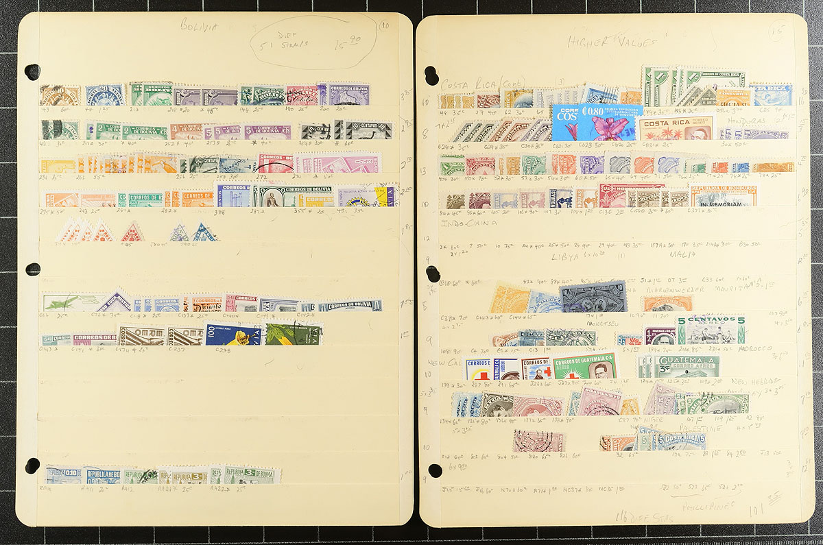 Large accumulation of primarily used South and Central America, 1880's-1960's, with a few thousand stamps in over 30 stock pages. A quick cursory check indicated better representation from Costa Rica, Nicaragua, Brazil, Colombia, along with a few other countries. Some of the material has been identified, with catalogue values for stamps generally $3 and under, leaving better finds, including better postmarks to the dedicated collector. A nice opportunity for worldwide collectors from this sometimes under-appreciated collecting area. Overall fine to very fine. Estimate =