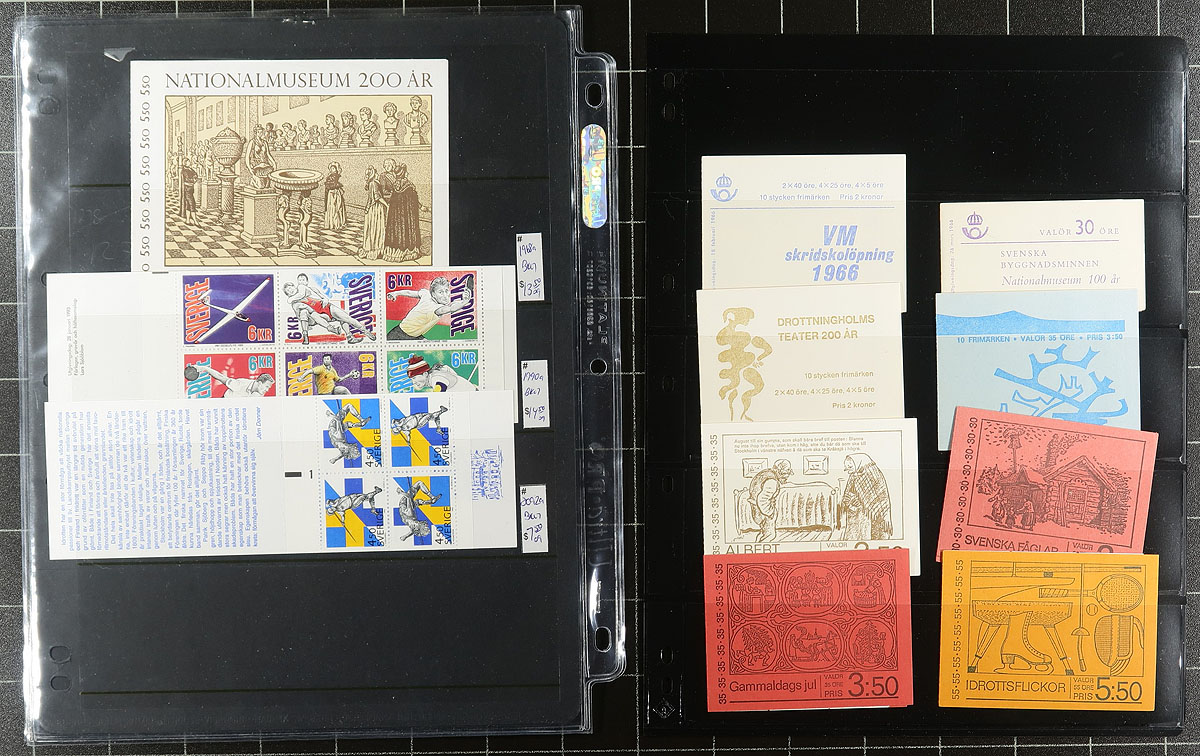 Group of roughly 95 never hinged Sweden compete booklets, 1940’s-1990’s. in roughly 12 stock pages, and a few loose booklets. A few of the items have been identified and catalogued, with a few in the $10 range and up. Unchecked for varieties, printings, etc, ideal for the Sweden or booklet collector. Owner’s older 2014 Scott US$769.00 =