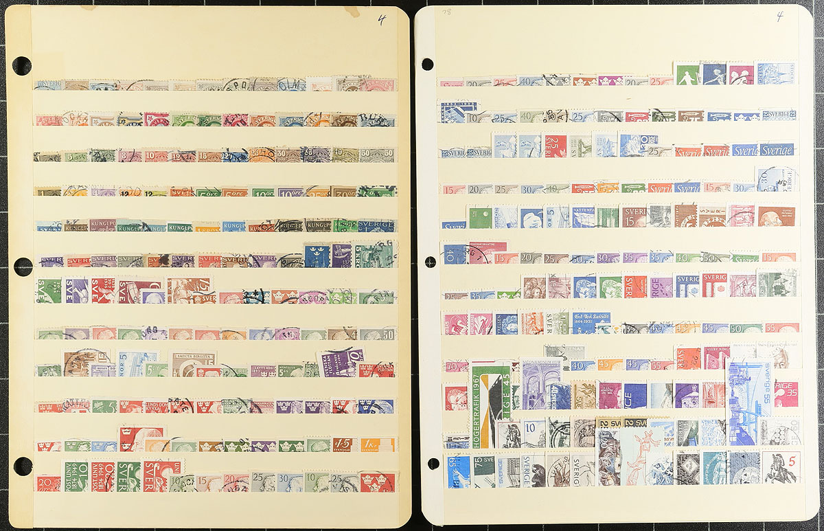 Nice collection / accumulation of used Sweden, 1858-2012, containing over 2,000 stamps in roughly 25 stock or album pages. The collection generally ranges from Scott #8/2692, including several sets, and book of the book issues, with a fairly decent selection of more modern issues. Postmark interest include cds, along with a few other types, including some "socked on the nose" town cancels. A nice lot for the Sweden or the worldwide postmark collector, a few faults to be expected, overall fine to very fine. Owner’s older 2012 Scott US$1,726.00 =