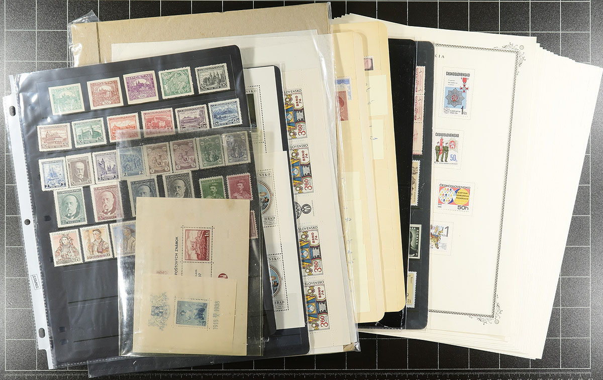 Group of primarily never hinged Czechoslovakia, 1919-1990, containing many hundreds of stamps in roughly 20 album or stock pages. The lot generally ranges from Scott #38/2777, including several sets, and a few souvenir sheets (including a few unlisted), and a small selection of back of the book issues. Owner's 2015 Scott catalogue value totals US$828.00 ($1117.80 CDN), leaving better finds for the dedicated collector. A nice lot for all collectors, overall fine to very fine. Estimate =