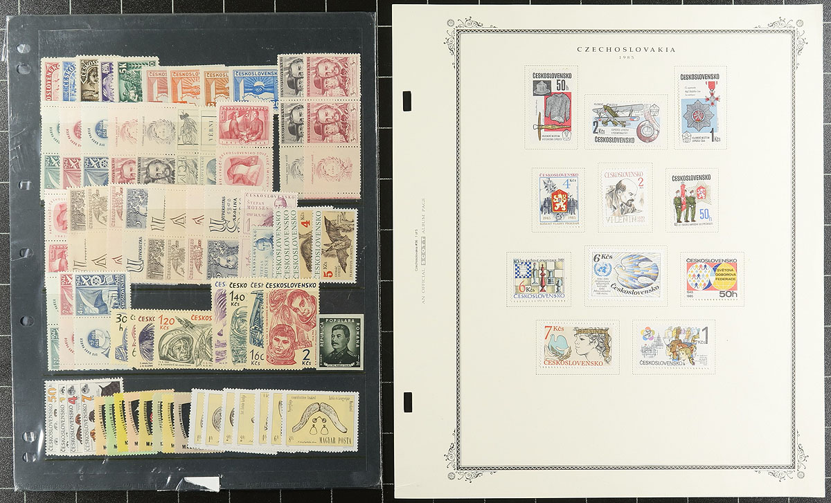 Czechoslovakia Group of primarily never hinged Czechoslovakia, 1919-1990, containing many hundreds of stamps in roughly 20 album or stock pages. The lot generally ranges from Scott #38/2777, including several sets, and a few souvenir sheets (including a few unlisted), and a small selection of back of the book issues. Owner's 2015 Scott catalogue value totals US$828.00 ($1117.80 CDN), leaving better finds for the dedicated collector. A nice lot for all collectors, overall fine to very fine. Estimate =