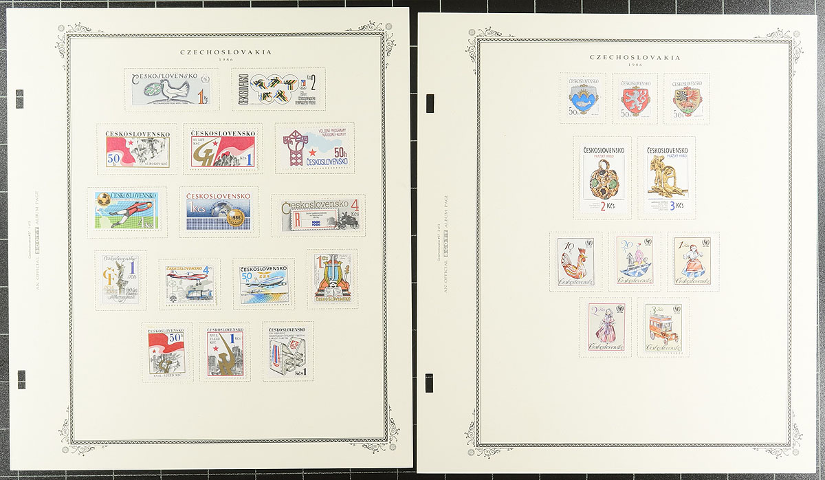 Czechoslovakia Group of primarily never hinged Czechoslovakia, 1919-1990, containing many hundreds of stamps in roughly 20 album or stock pages. The lot generally ranges from Scott #38/2777, including several sets, and a few souvenir sheets (including a few unlisted), and a small selection of back of the book issues. Owner's 2015 Scott catalogue value totals US$828.00 ($1117.80 CDN), leaving better finds for the dedicated collector. A nice lot for all collectors, overall fine to very fine. Estimate =