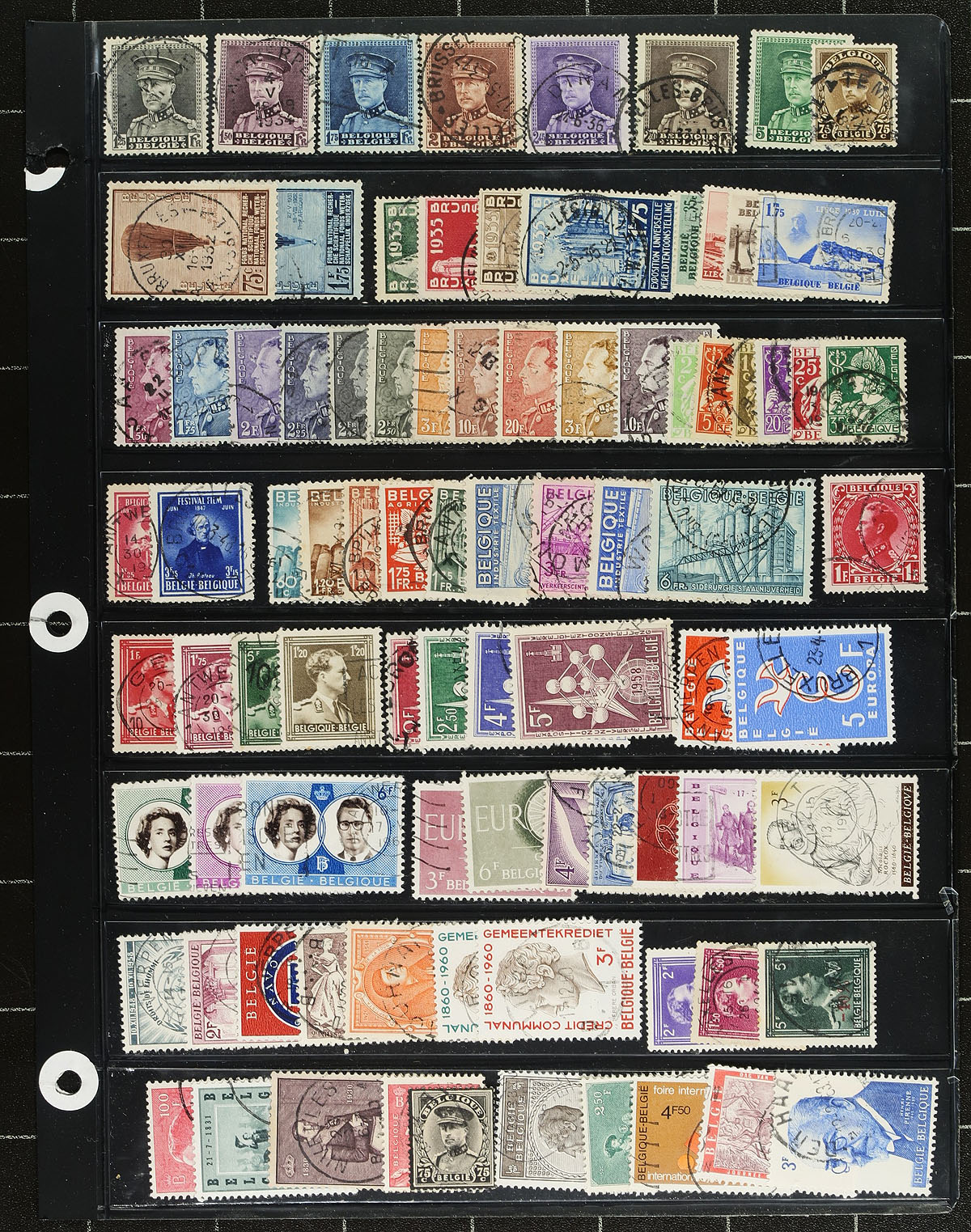 Nice collection of used Belgium, 1851-2001, containing roughly 1,500 stamps in over 12 album or stock pages. The collection generally ranges from Scott #6/1870, including a few early issues with #s 6 (x2), 7 (x2), 8, 10 (x2), 11 (x2), 12, 15-16, along with sets, back of the book issues, including a decent selection of railway posts. A check of some catalogue values indicated a few singles and partial sets cataloguing $10 to $15 and up, with owner's 2012 Scott catalogue value totals US$1,250.00 ($1687.50 CDN). Postmark interest includes numeral, cds, and other types, including some "socked on the nose" town cancels. A nice lot for the Belgium or worldwide used collector, overall fine to very fine. Estimate =