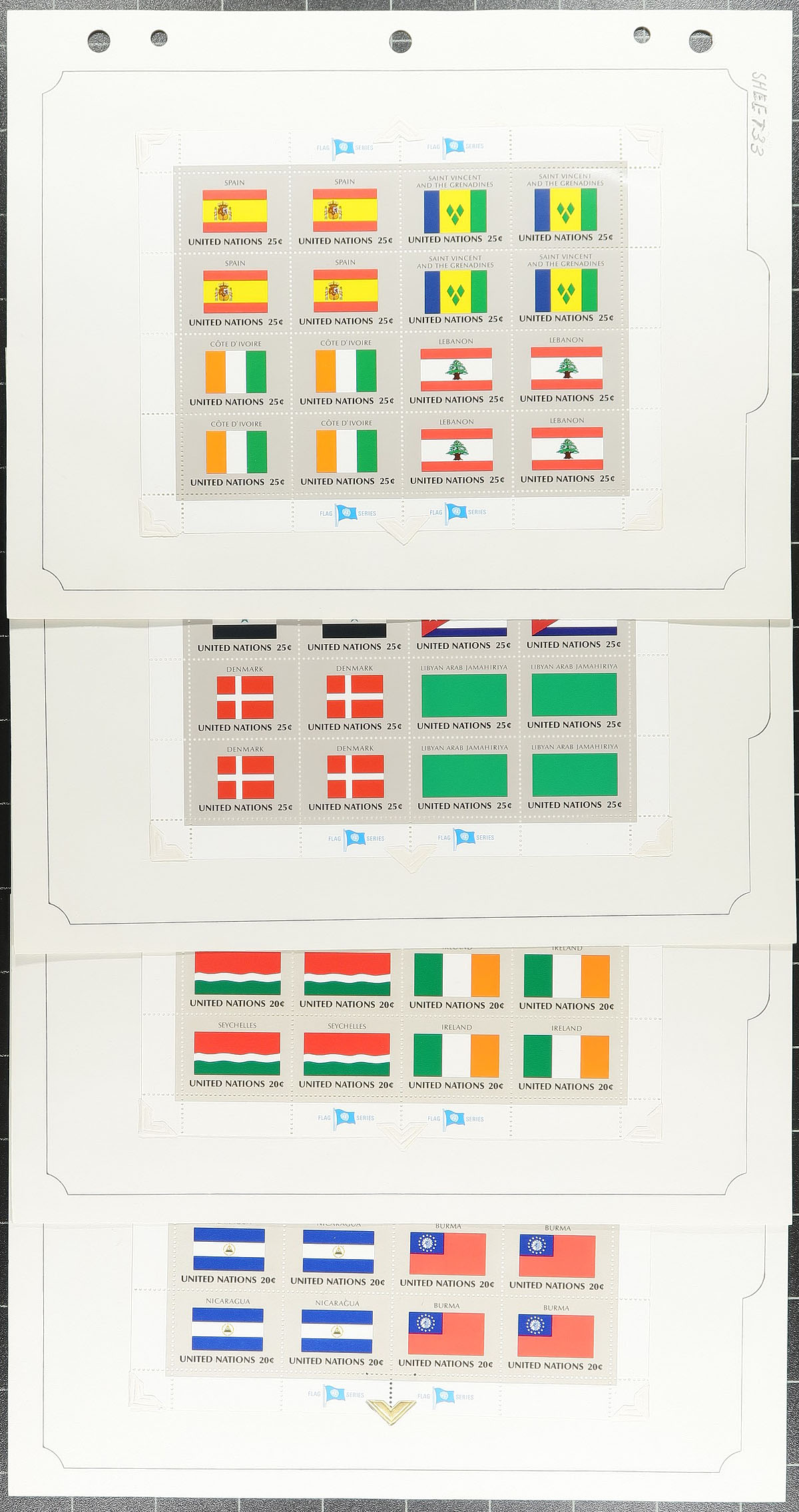Accumulation of primarily never hinged United Nations stamps and sheets, 1950's-1990's, with many hundreds of stamps in a variety of formats. The lot includes a collection ranging from the 1950's to the 1970's in a hingeless Lighthouse album (includes some material from Switzerland), flag sheets on album pages, blocks and souvenir sheets in stock pages, a handful of souvenir folders, Vienna issues in hingeless album pages, and much more. Owner's Scott 2017 catalogue value in excess of $500.00 (some material has not been previously catalogued), leaving finds for all, ideal for topical and thematic collectors noting several suitable subjects. Overall fine to very fine. Estimate =