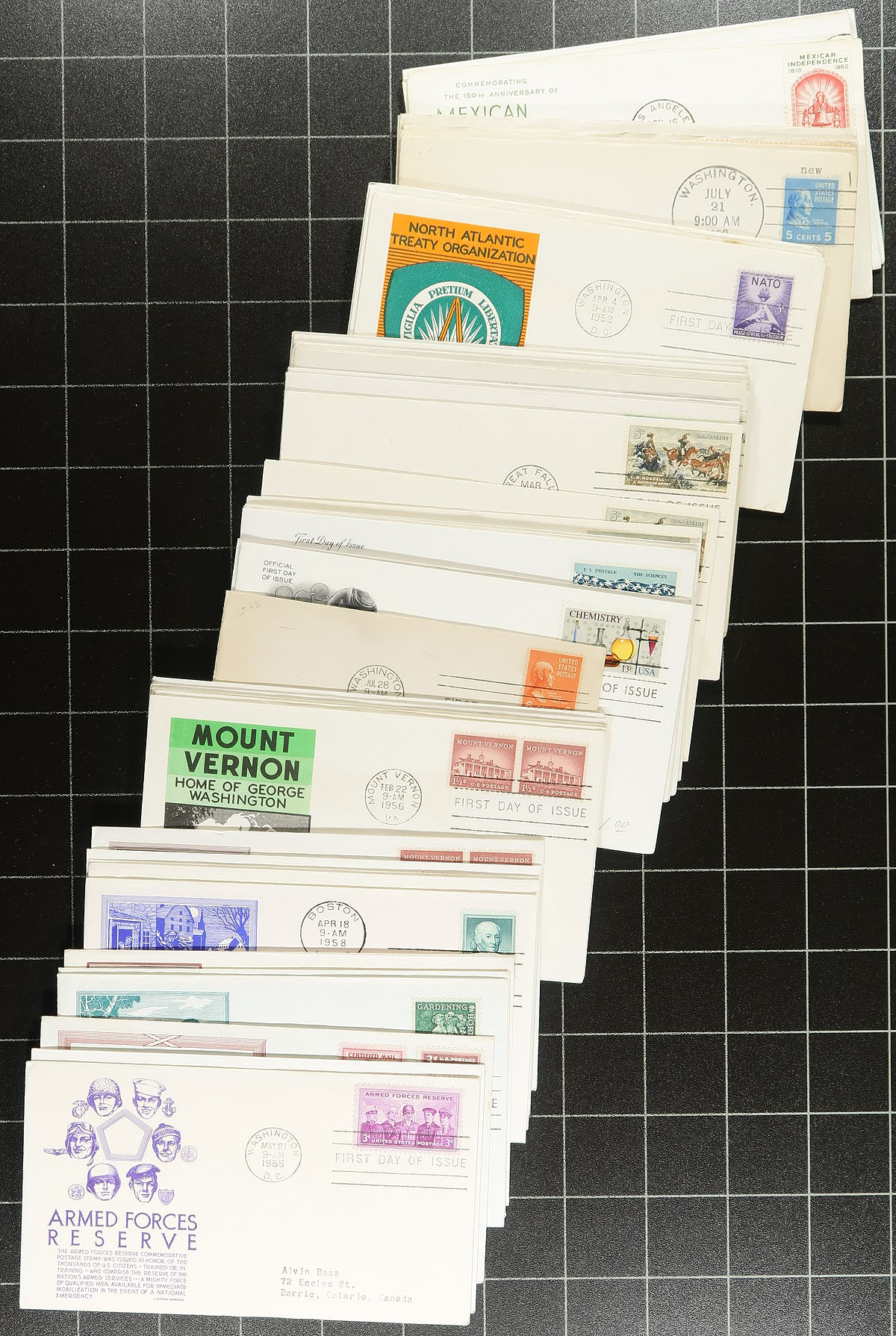 Nice collection of roughly 750 different United States first day covers, 1940's-1970's, filling a small tub, noting mostly single frankings and many having colourful cachets, including a few 1970's "Colorado Silks". Generally unaddressed with a few better values, with a probable high total retail value, overall fine to very fine. Estimate =