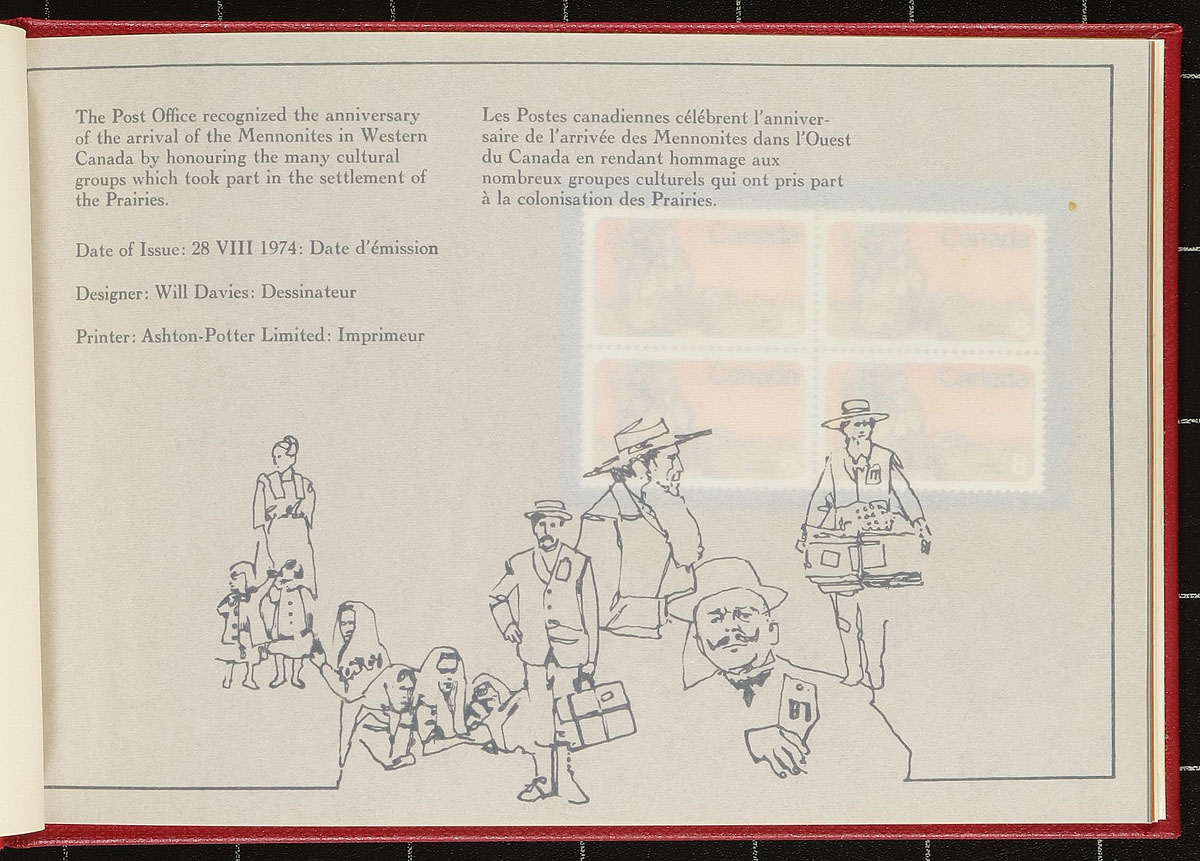 Post Office Presentation Book 1973-1974. A deluxe hard-bound edition small format book, in dark red with Coat of Arms embossed on cover, with 11 different sets ranging from the 1973 RCMP issue, up to Christmas 1974. Title page reads (bilingually) "Presented with the compliments of the Canada Post Office" and hand-signed by "Murray E Featherstone, Manager Retail Division = Western Postal Region". A very unusual Post Office presentation booklet, the first we have seen! Estimate =