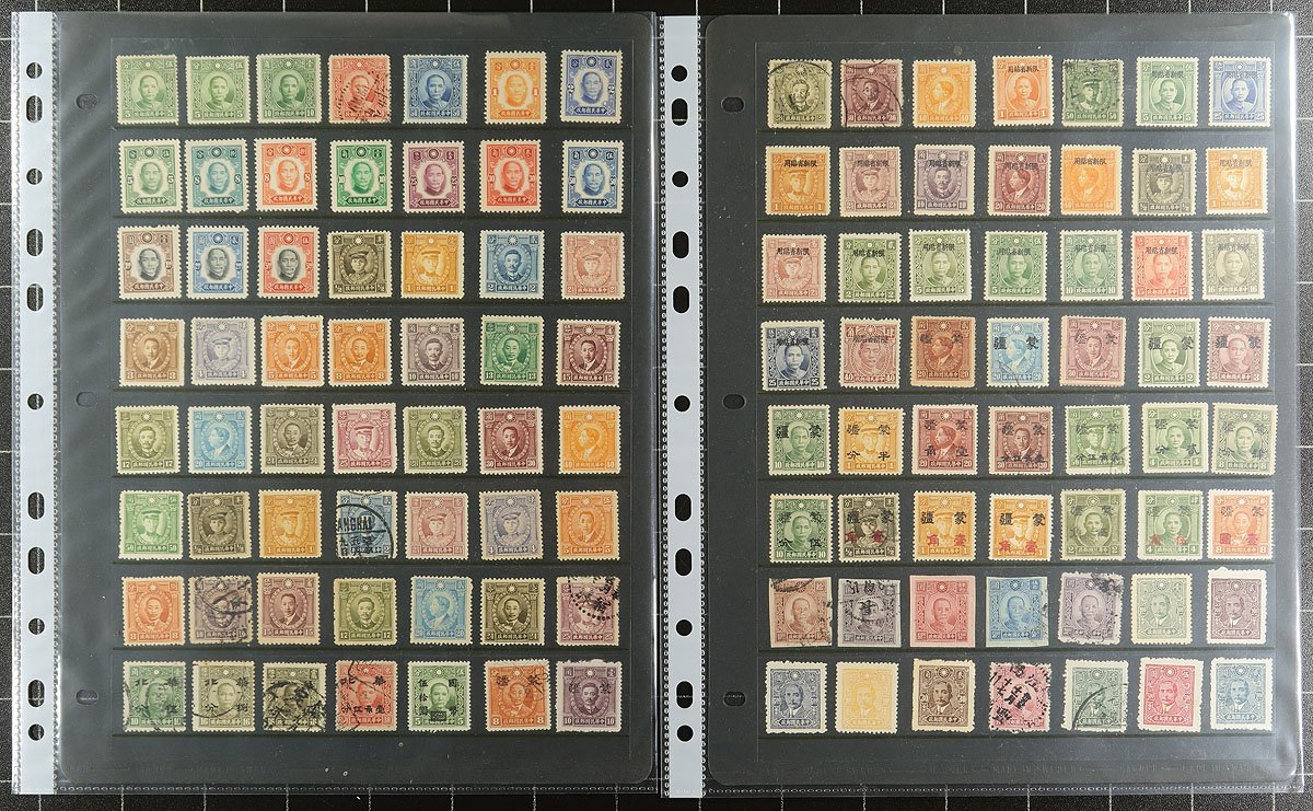 An interesting assortment "mixed lot" of a few hundred mint and used stamps, nearly arranged on a couple of stockpages, plus several album pages. Totally unchecked, a perfect study project for someone looking to sort out the various issues here, with potential in better surcharges / overprints etc. Estimate =
