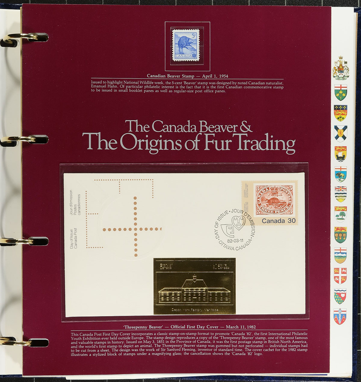 Complete set of all 84 "Story of Canada" First Day Covers and mint stamp collection produced between 1982 and 1989. All housed in four deluxe slipcased albums with reams of additional information on all the issues that have been included in the series. All of the FDCs have additional embossed gold foil cachets unique to this series. Huge new issue cost and few of the sets we see are complete like this one. Estimate =