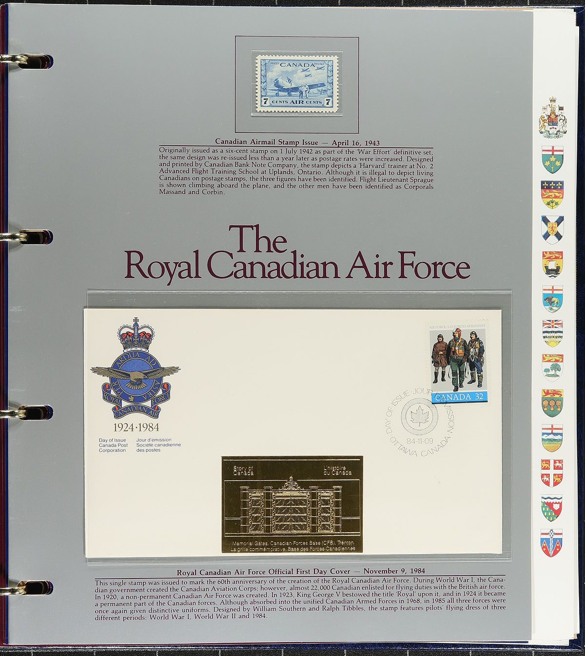 Complete set of all 84 "Story of Canada" First Day Covers and mint stamp collection produced between 1982 and 1989. All housed in four deluxe slipcased albums with reams of additional information on all the issues that have been included in the series. All of the FDCs have additional embossed gold foil cachets unique to this series. Huge new issue cost and few of the sets we see are complete like this one. Estimate =