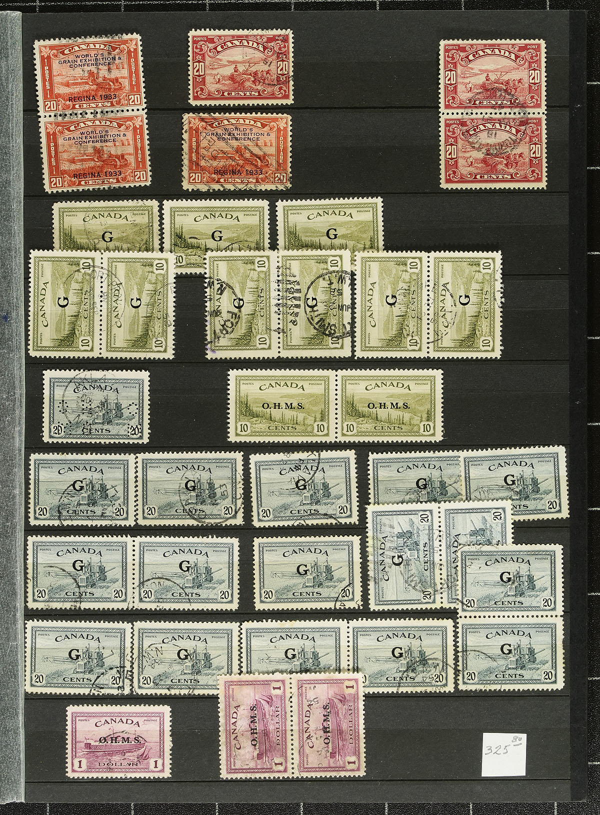 An "odd ball" assembly of "back of the book" plus 1950's high values and other "odds" that did not fit anywhere else (private perfins, consular service stamps, postmarks etc). Some of the highlights include #302 ($1.00 Fisheries) used x30, OHMS perfins, "G" and "O.H.M.S." officials (including high values), multiple 50c Oil Wells (including NWT postmarks) etc. All arranged (somewhat haphazardly) on stockpages. Estimate =