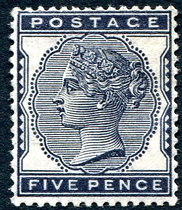 F/VF mint Lightly Hinged example of the 1881 issued Queen Victoria 5p deep indigo stamp. An attractive and seldom seen mint 1880's issue, with deep colour and near pristine gum for this period. 2025 Scott US$850.00 =