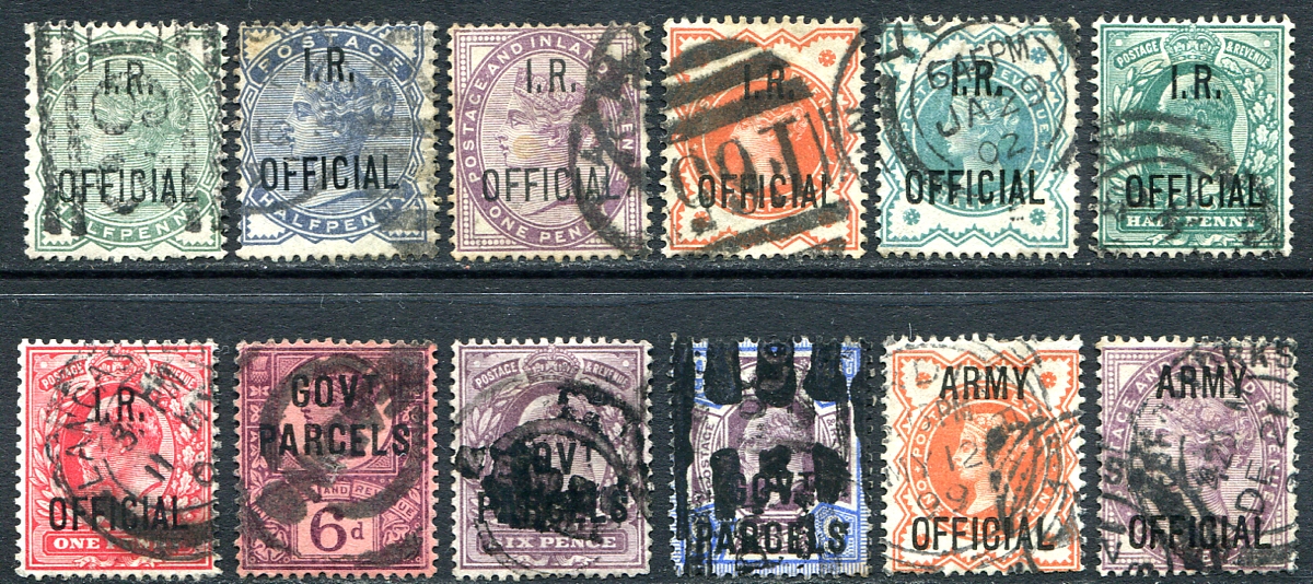 F/VF used assortment of 12 different Queen Victoria / Edward VII overprint Officials, including #O2-O4, O11, O16, O19-O20, O34, O41-O42, O54-O55. A very useful group, with typical cancels for the issues / period. 2025 Scott US$505.50 =