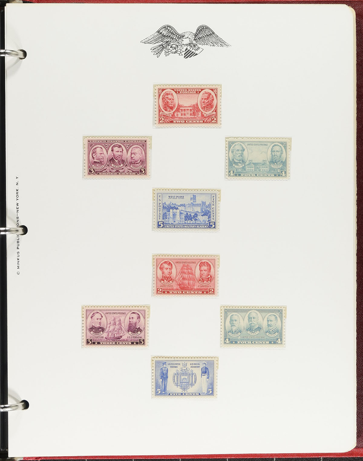 Accumulation of roughly 20 different United States Topical and Thematic Collections filling a a bankers box, including The American Revolution Stamp Album in two volumes, The Bi-Centennial collection in two volumes, several folios and much more. Just a few of the subjects include Presidents, nature, space and more. Estimate =