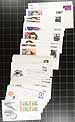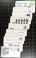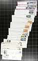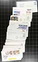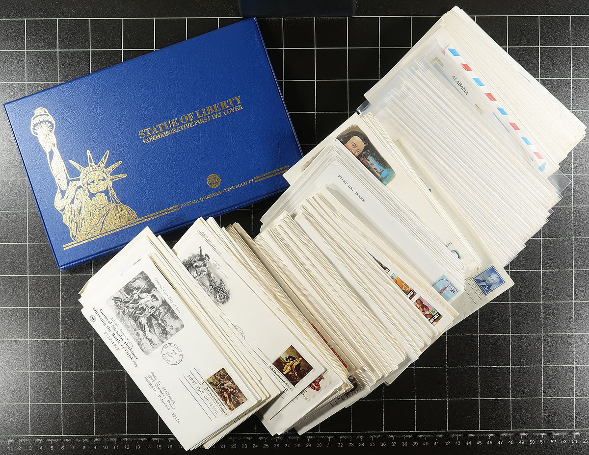 Accumulation of several hundred United States first day covers filling a box, 1930's-1990's, noting singles, pairs, blocks, coil pairs, booklet panes, and sets frankings. We note almost all the covers have private made cachets noting Fleetwood and Art Craft, along with a few "Colorado Silk" cachets, and a few others. Also includes a few event covers and space related material. A nice lot for the cover, topical, and thematic collector. Overall fine to very fine. Estimate =