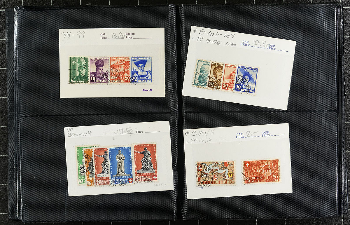 Nice collection of Switzerland semi-postal used sets, 1924-2001, containing 43 different sets in individual 102 cards, housed in a small album. The lot ranges from Scott #B29/B663, noting a few sets cataloguing $15 to $30 and up. A nice lot from this popular collecting country, and should be continued until complete. 2026 Scott US$427.00 =