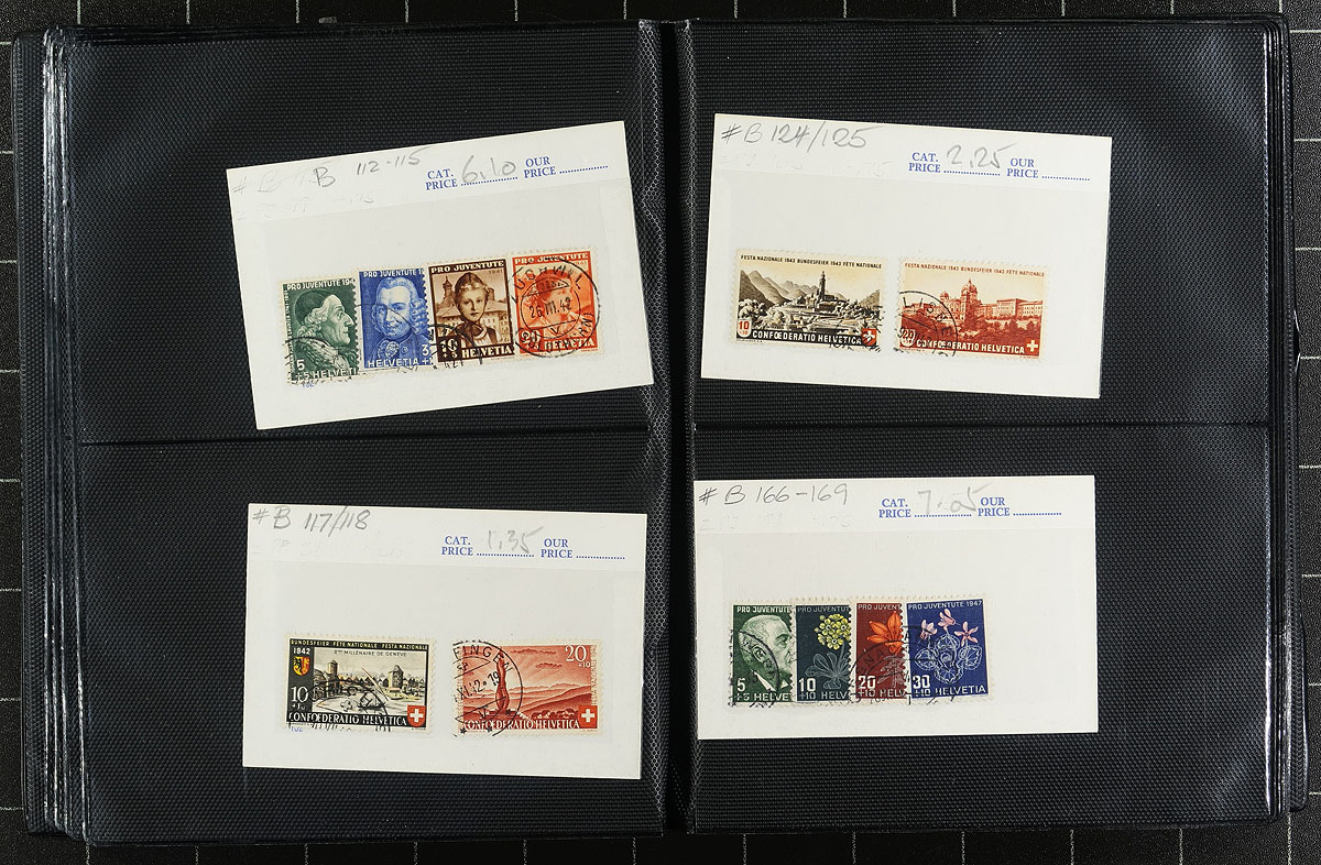Nice collection of Switzerland semi-postal used sets, 1924-2001, containing 43 different sets in individual 102 cards, housed in a small album. The lot ranges from Scott #B29/B663, noting a few sets cataloguing $15 to $30 and up. A nice lot from this popular collecting country, and should be continued until complete. 2026 Scott US$427.00 =