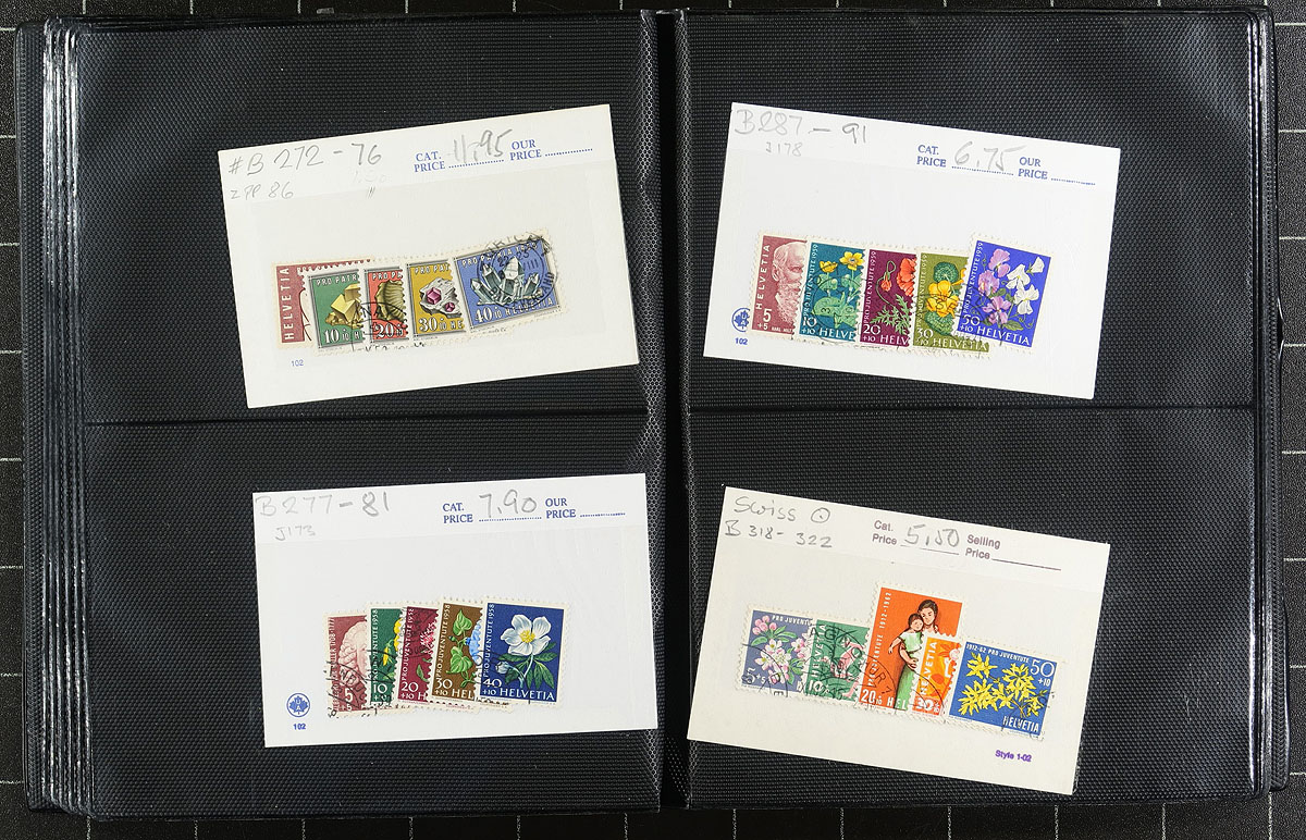 Nice collection of Switzerland semi-postal used sets, 1924-2001, containing 43 different sets in individual 102 cards, housed in a small album. The lot ranges from Scott #B29/B663, noting a few sets cataloguing $15 to $30 and up. A nice lot from this popular collecting country, and should be continued until complete. 2026 Scott US$427.00 =