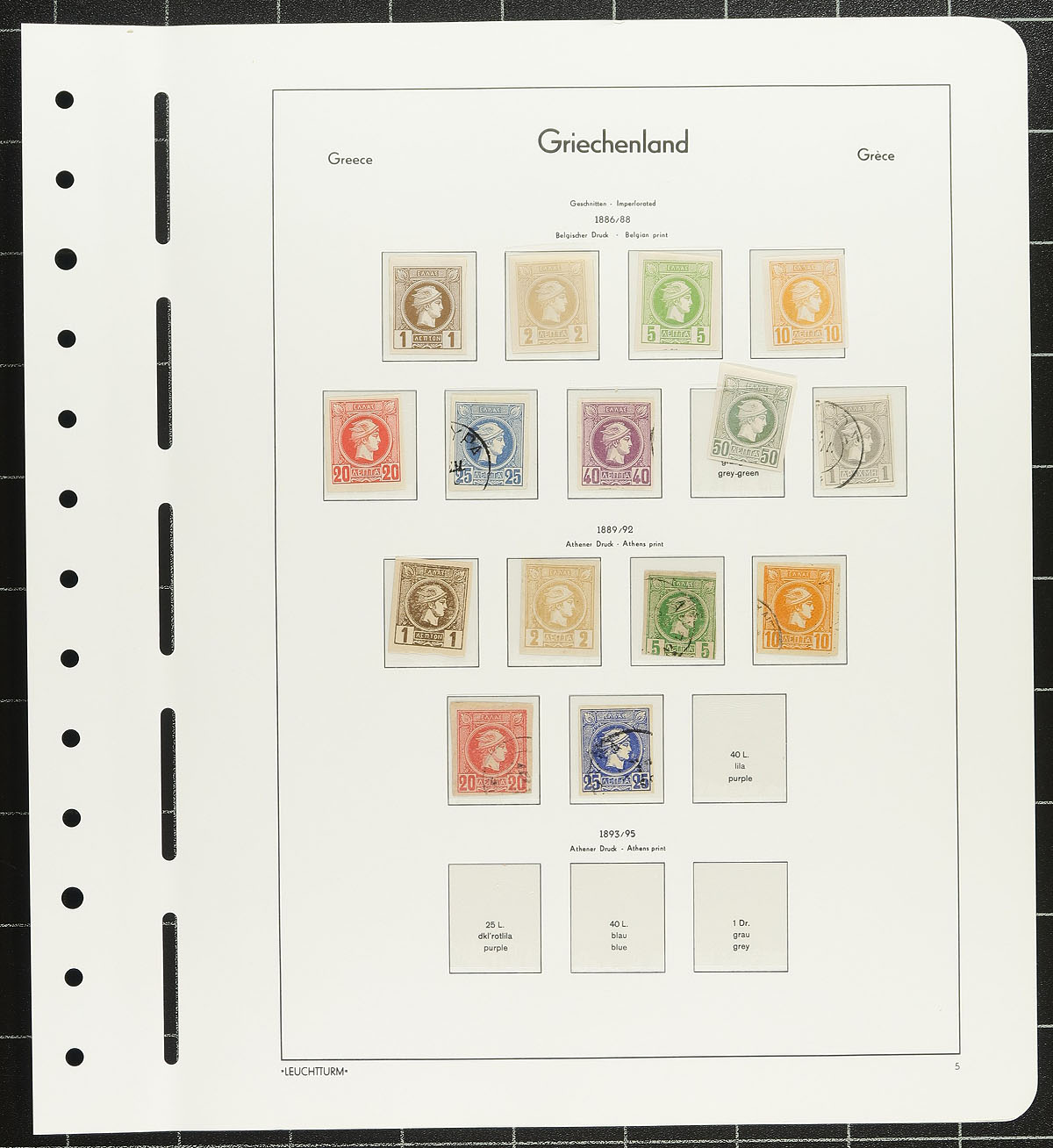 Collection of primarily mint Greece, 1880's-1960's, containing roughly 425 stamps in several mostly hingeless album pages and a few stock pages. The lot generally ranges from Scott #48/900, includes a decent selection of perforated and imperforated Hermes Heads, and back of the book issues. A cursory check indicated singles, sets, and partial sets cataloguing $10 and up including Scott #416-420 (nh, c.v. $125 total), leaving better finds to the dedicated collector. Owner's 2013 Scott catalogue value for the collection totals US$2,533.00 ($3419.55 CDN). A nice lot for collectors and dealers alike, with online photos showing a sampling. Estimate =